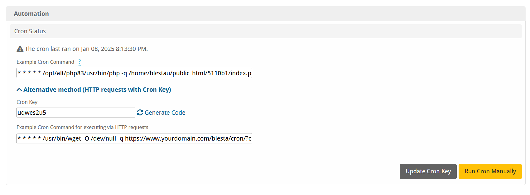 1. Change "Update Cron Key" text to say "Alternative method (HTTP requests with Cron Key)
