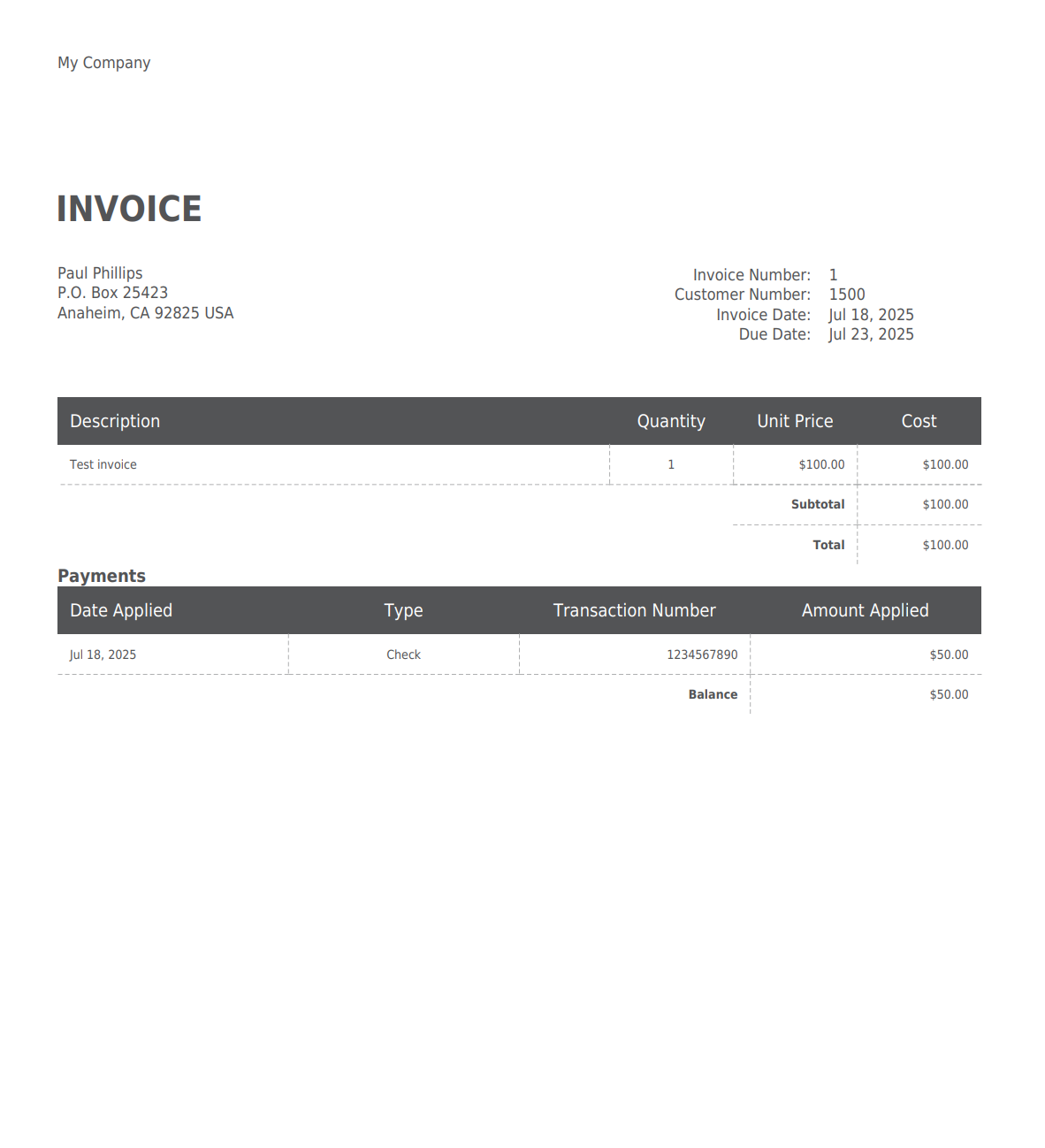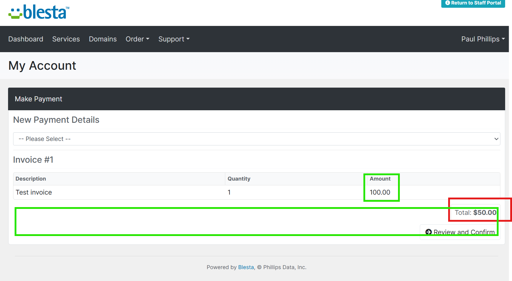 • Add the Payments section on the client "Pay" link (If a partial payment is applied to an invoice, the total shown reflects the difference but it's not apparent why it's less than the item amount.